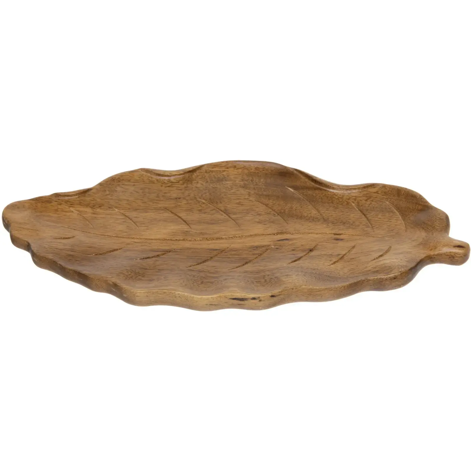 Блюдо для подачи «SHEF», деревянное, форма листа с волнистым краем, 29х13 см, коричневое