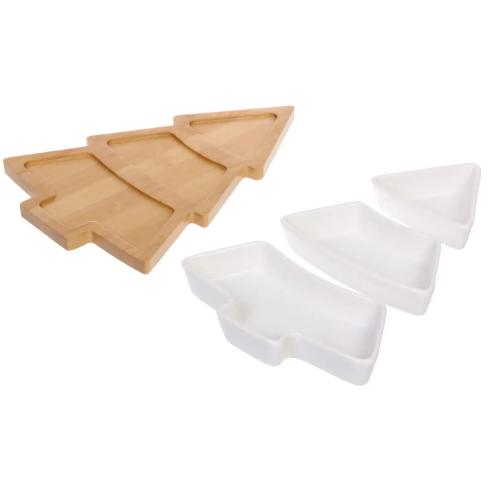 Блюдо для сервировки "White magic" Елочка, керамика/дерево, 18,5*26*4,5см