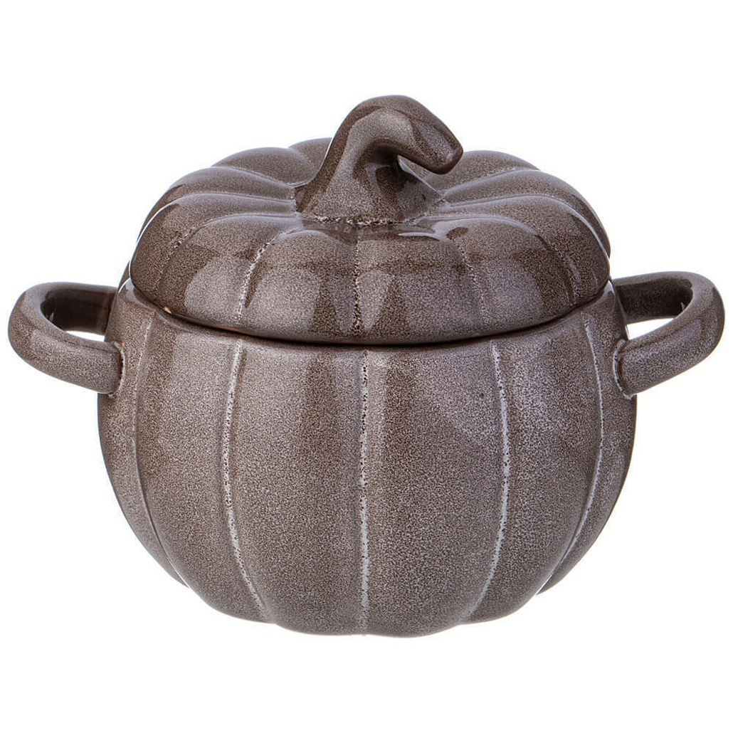 Подходит как для домашнего использования, так и для подарка. Изготовлен из глазурованной керамики, которая легко чистится и устойчивы к температурам. Классическая форма с сегментами, ручки по бокам и крышка в виде тыквенного хвостика обеспечивают комфорт в использовании и надежность.