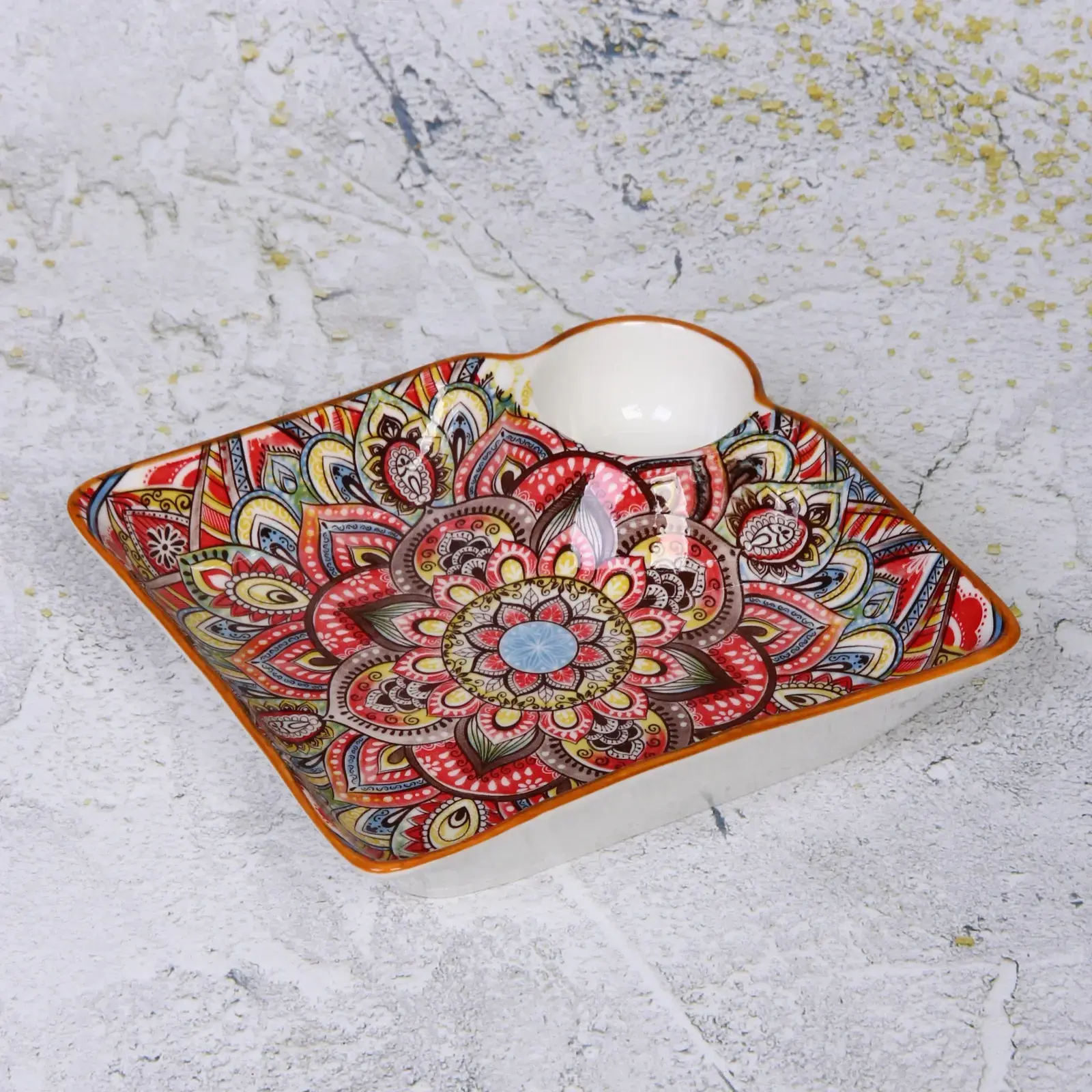 Керамическое блюдо «Марракеш» — это идеальное решение для тех, кто ценит красоту и практичность. Яркий оранжевый цвет и геометрические узоры делают его не только функциональным, но и стильным элементом сервировки. Это блюдо станет настоящим украшением вашего стола, привнося в атмосферу уюта и тепла.