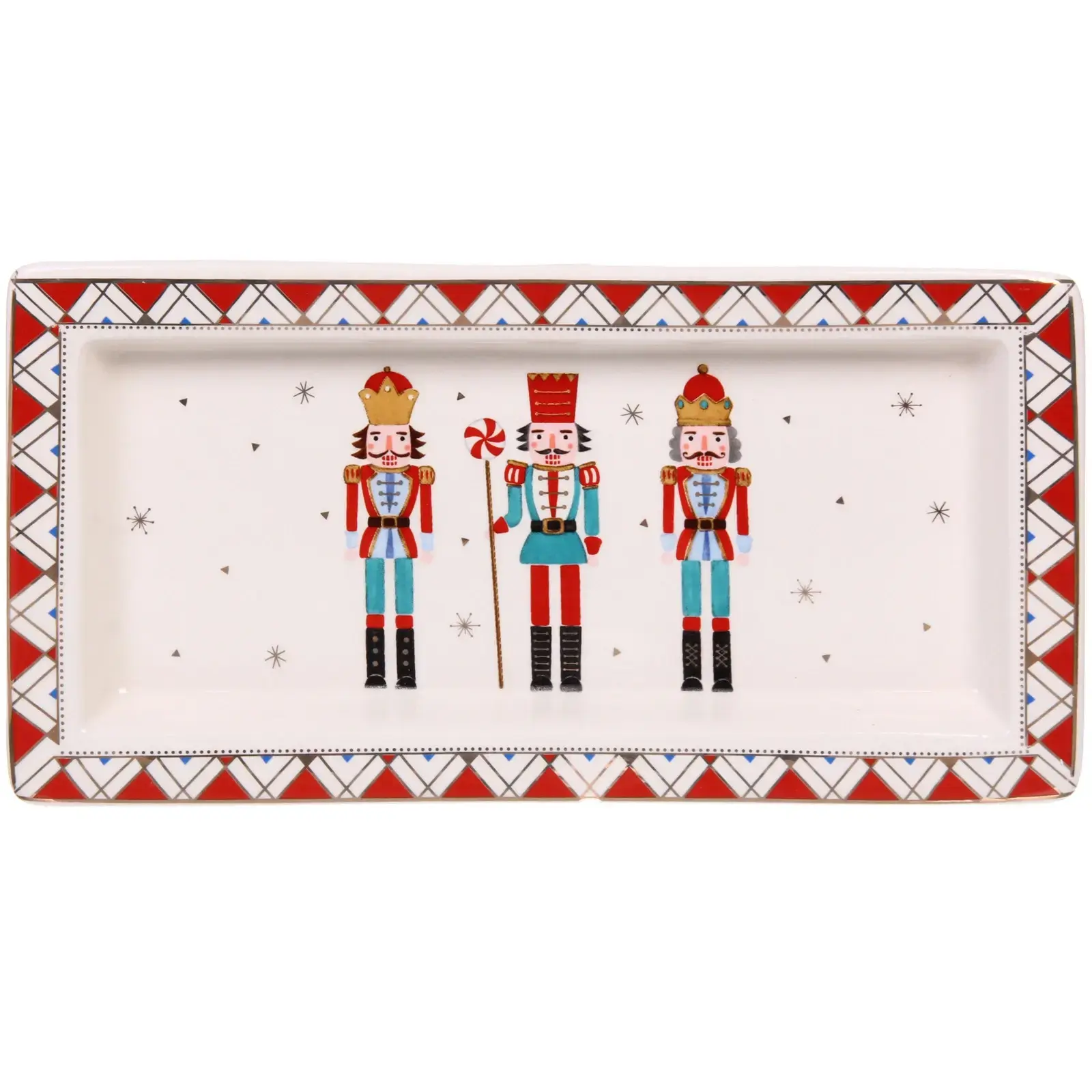 Создайте атмосферу волшебства на вашем праздничном столе с помощью керамического блюда «Сказочный марш». Это изделие не только украсит ваш стол, но и станет отличным акцентом на любом празднике. Его уникальный дизайн с изображением трех фигурок солдатиков в ярких костюмах и мелкими золотистыми звёздочками добавит нотку радости и уюта в ваш дом.