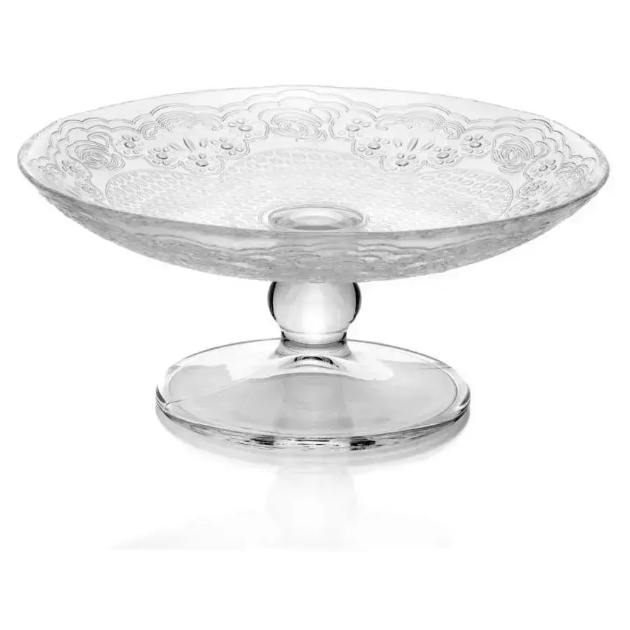 Декоративное блюдо на ножке «Лейси» 250 мм, прозрачное стекло с рельефным узором