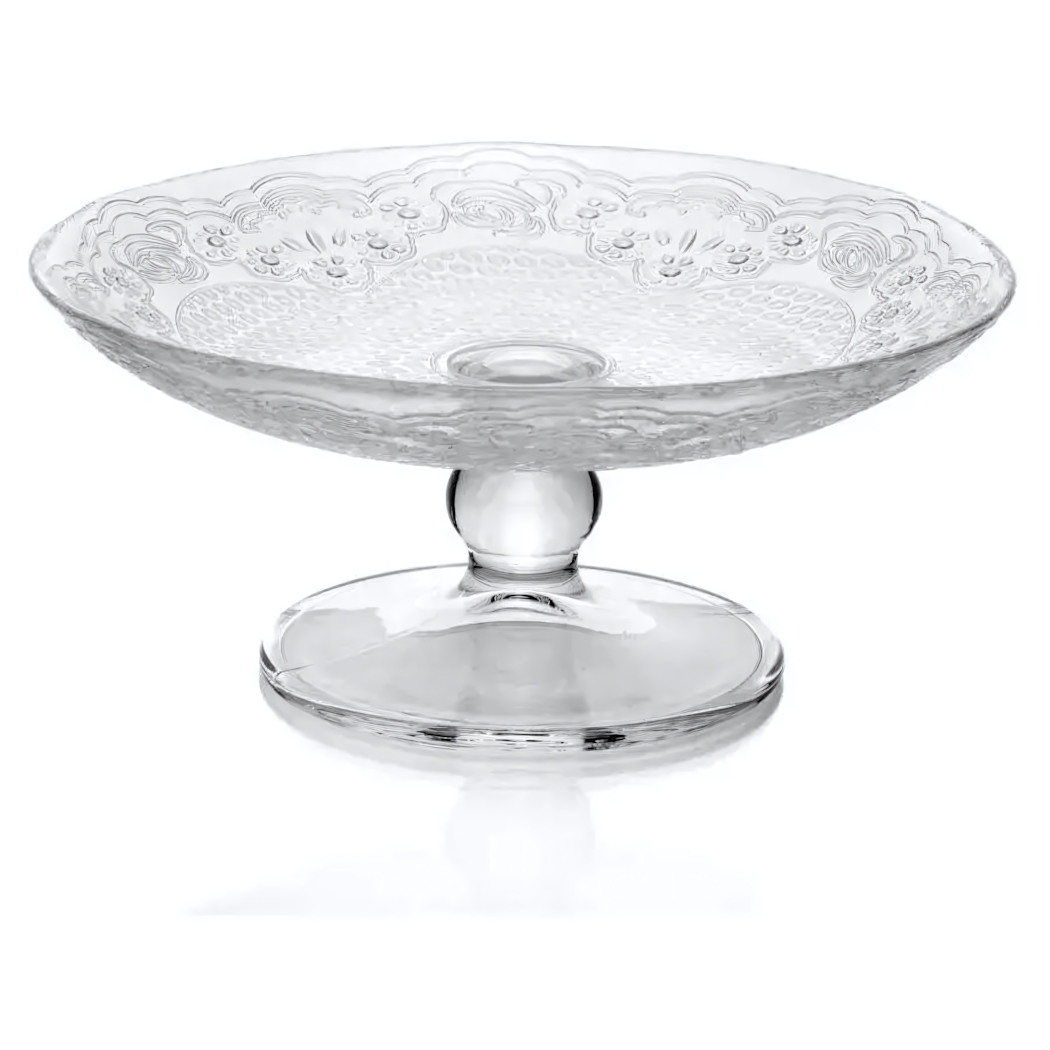 Стеклянное блюдо «Лейси» сочетает практичность сервировки и изысканный декор. Рельефный цветочный орнамент создаёт эффектную игру света, превращая обычную подачу угощений в элемент интерьера.
