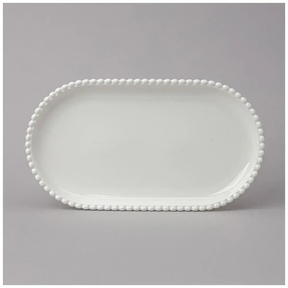 Блюдо овальное Lefard Pearl, фарфор, 36х20х3 см, белое, рифленый край