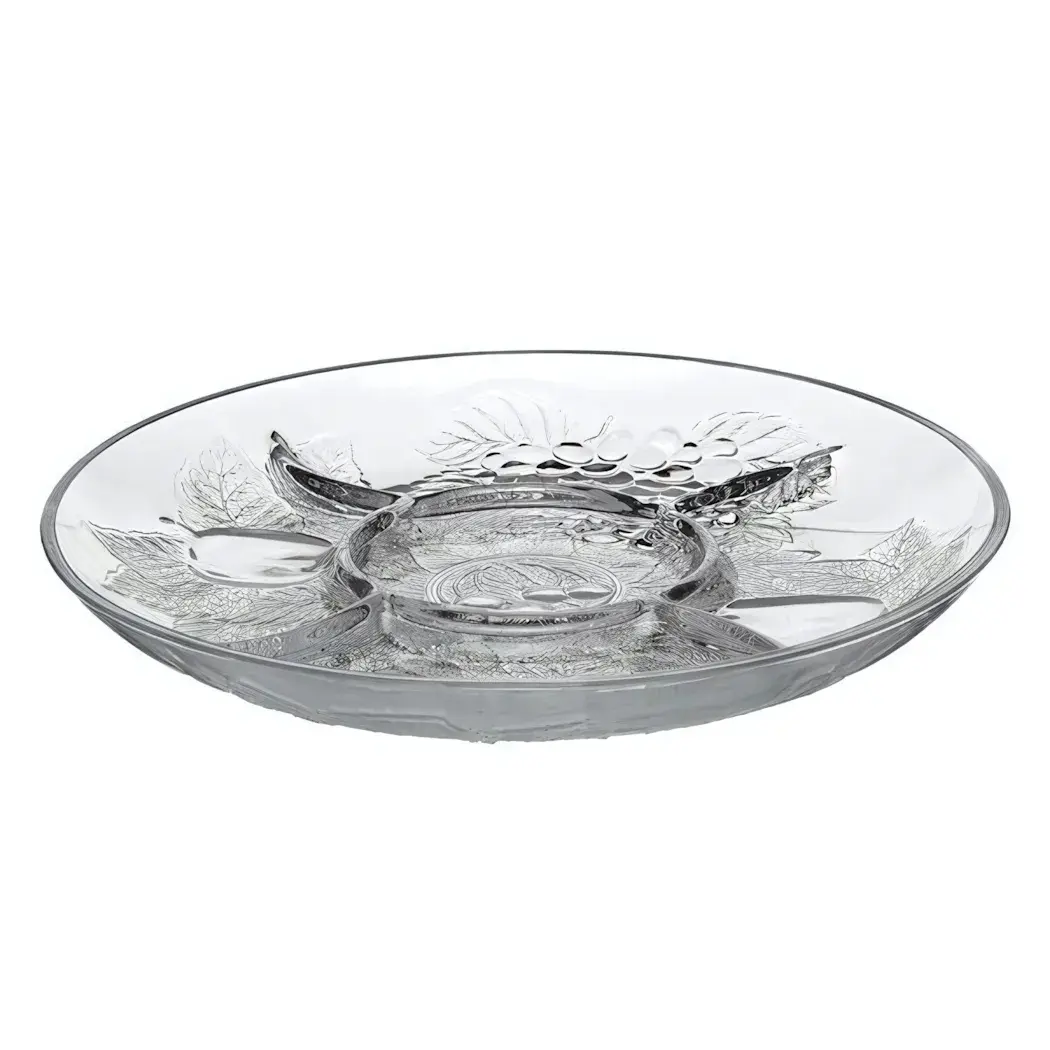 Блюдо стеклянное 31см «Пикник-фд» — это не просто посуда, а настоящий элемент стиля и комфорта на вашем столе. Его рельефный дизайн с изображением листьев и ягод добавляет изысканности и делает каждую подачу блюд особенной. Это блюдо идеально подходит для сервировки закусок, фруктов или десертов, что делает его универсальным помощником на любом празднике или семейном ужине.