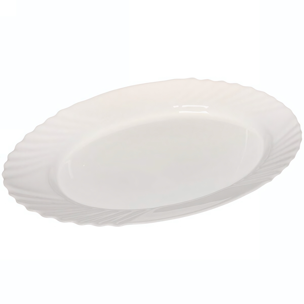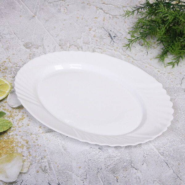 Сервировочное блюдо из прочной стеклокерамики с рельефным краем создаст изысканную подачу холодных закусок, десертов и канапе. Идеальная гладкая поверхность подчеркнет фактуру блюд, а классический белый цвет гармонично впишется в любой стиль стола.