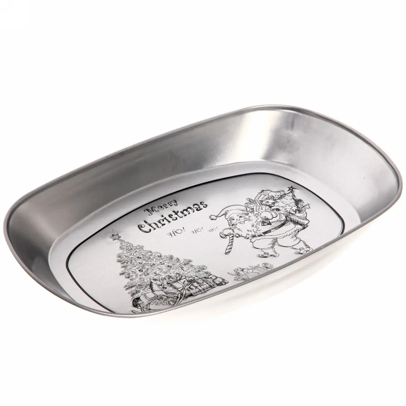 Выбирая это блюдо, вы получаете не только красивый элемент декора, но и практичное решение для сервировки. Жестяной материал обеспечивает долговечность и легкость в уходе. Блюдо легко мыть и хранить, а его компактные размеры (25х16 см) позволяют разместить его даже на небольшом столе. Кроме того, новогодний дизайн с надписями «Merry Christmas» и «HO! HO! HO!» добавляет праздничного настроения.
