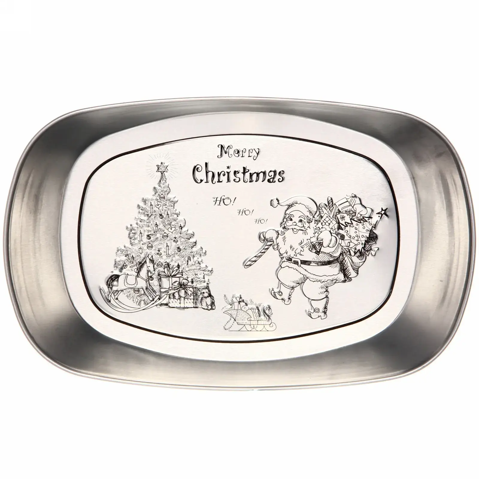 Размеры блюда составляют 25х16 см, что делает его достаточно вместительным для различных угощений. Изготовлено из жестяного материала, оно отличается прочностью и устойчивостью к повреждениям. Серебристый цвет и гравировка делают его не только функциональным, но и стильным элементом вашего новогоднего декора.