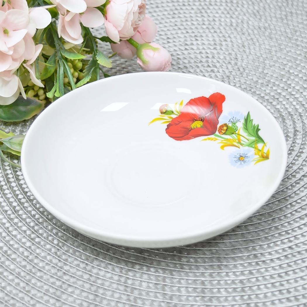 Блюдце фарфоровое «Форма 651» 15 см, декор красные маки и голубые цветы, для элегантной сервировки