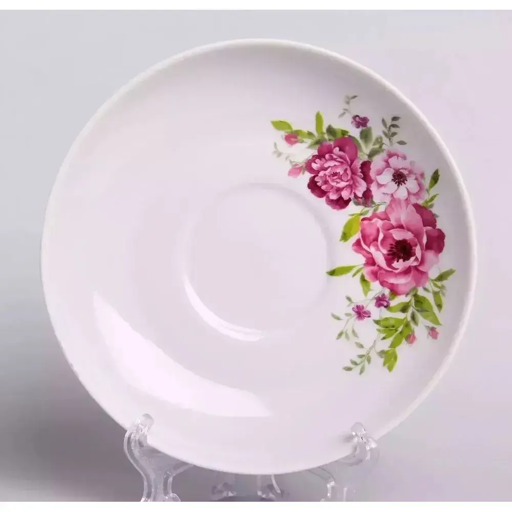 Блюдце чайное фарфоровое 'Оливия' 140 мм, цветочный узор, для сервировки