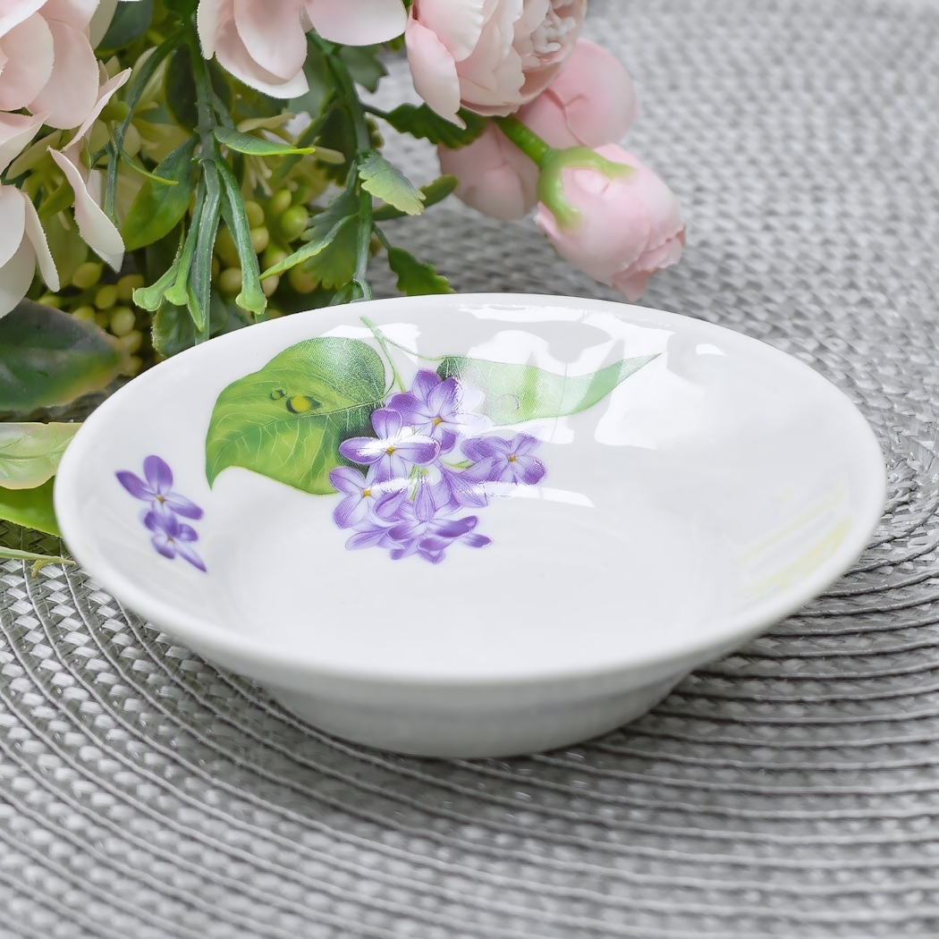 Блюдце для варенья «Сирень», фарфор, форма 89, белое с фиалками, 15 см