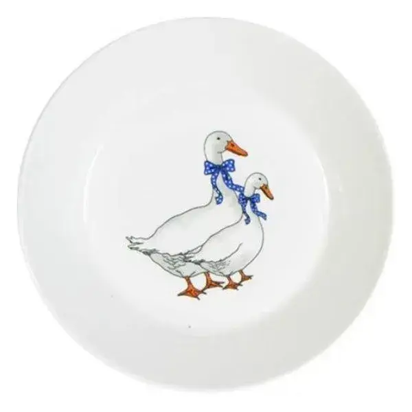 Блюдце фарфоровое с декоративной росписью «Гуси», 140 мм, синие бантики, ручная работа