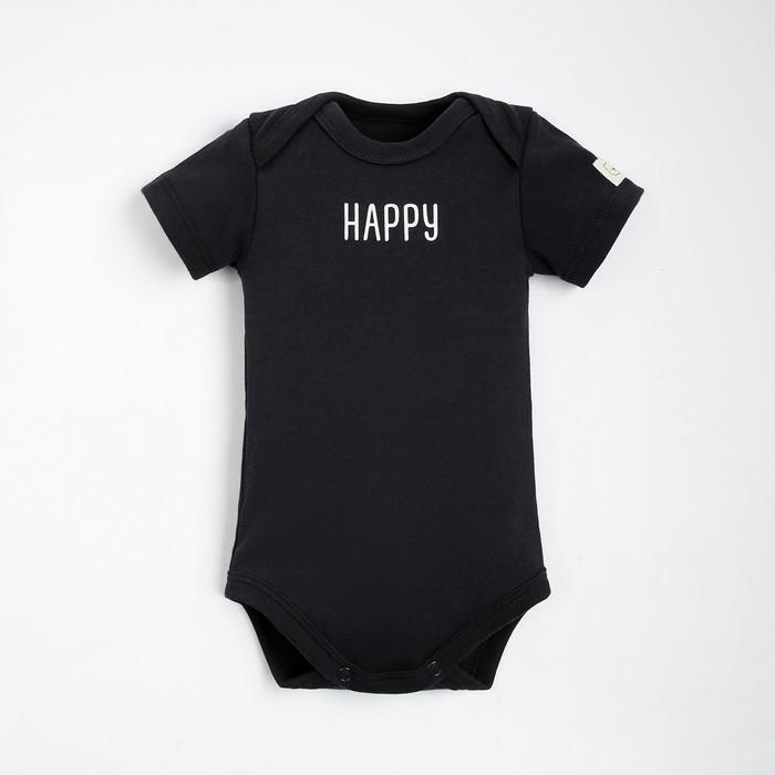 Боди 'Basic Line' с принтом HAPPY, 100% хлопок, размер 80-86 см, черный