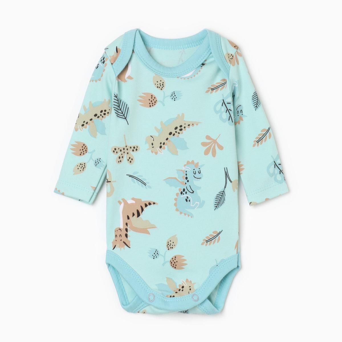 Боди детское "Дракоша" аквамариновое, р. 68-74, 100% хлопок, с милым принтом