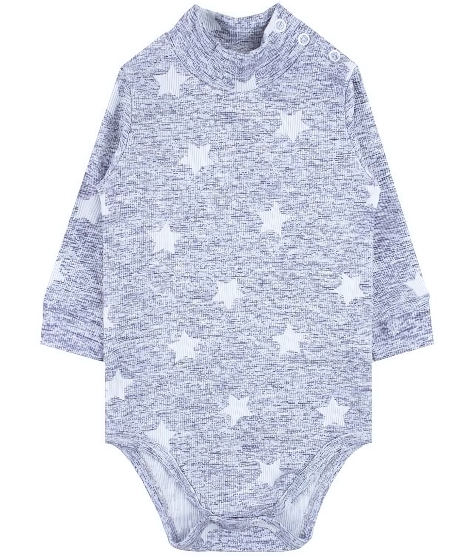 Боди детское из кашкорсе, серый со звёздами, размер 92, мягкий хлопок