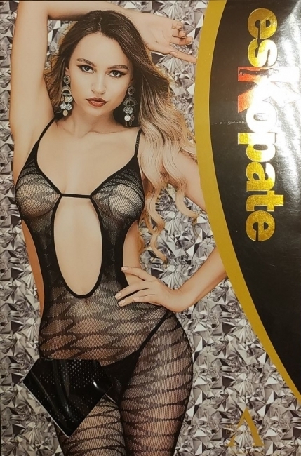 Боди-комбинезон черный, размер OS (42-46), сетчатая текстура, для женщин