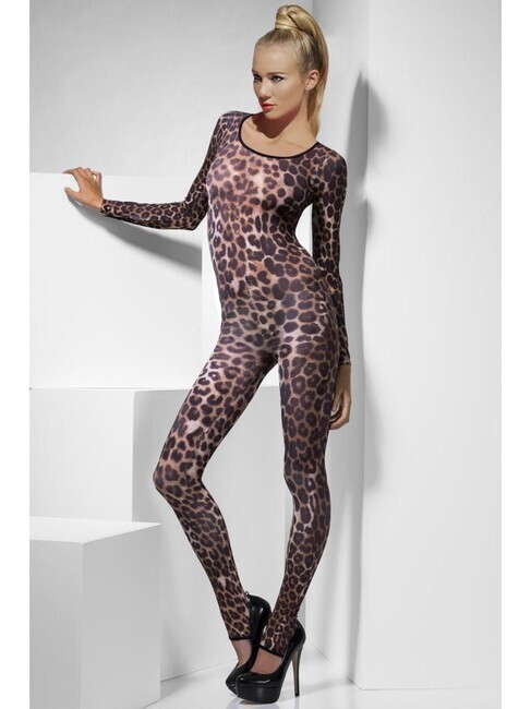 Комбинезон имеет светло-коричневый цвет с темно-коричневыми и черными пятнами, создающими эффект леопардового меха. Он идеально облегает фигуру, подчеркивая ее достоинства. Высокое качество материала гарантирует долговечность и комфорт, что делает этот боди-комбинезон отличным выбором для вашего гардероба.