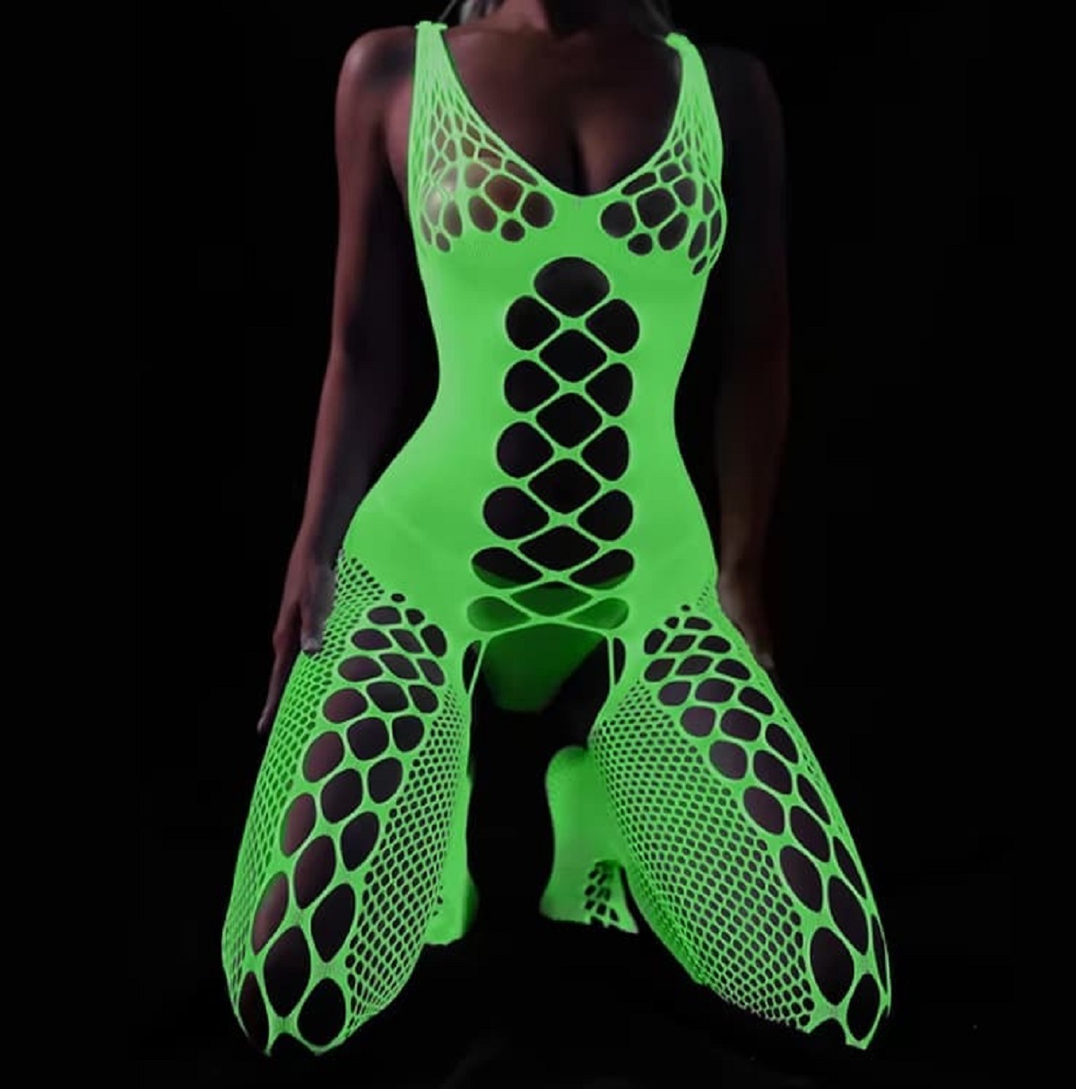 Привлекайте взгляды и подчеркивайте свою уникальность с этим соблазнительным комбинезоном. Благодаря инновационному светящемуся эффекту, вы будете сиять в темноте, превращая каждое появление в особенное событие.