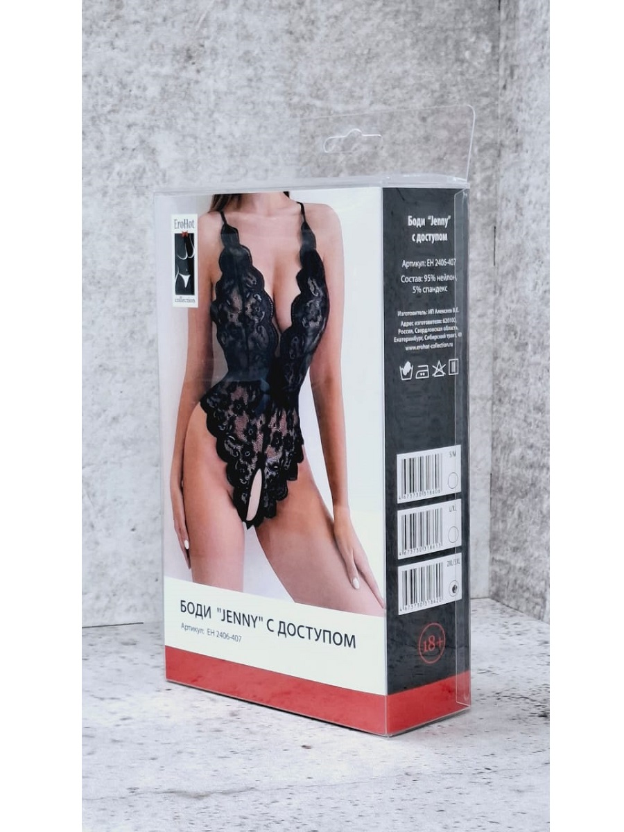 Модель "Jenny" гармонично сочетает в себе классическую элегантность и провокационные детали. Глубокий вырез эффектно акцентирует внимание на зоне декольте, а полностью открытая спинка подчеркивает хрупкость и изящество вашей осанки. Нижняя часть изделия выполнена в виде кокетливых шортиков, которые идеально садятся по фигуре. Главной пикантной деталью модели является открытый доступ в интимном месте, что делает это белье идеальным выбором для особенных вечеров.