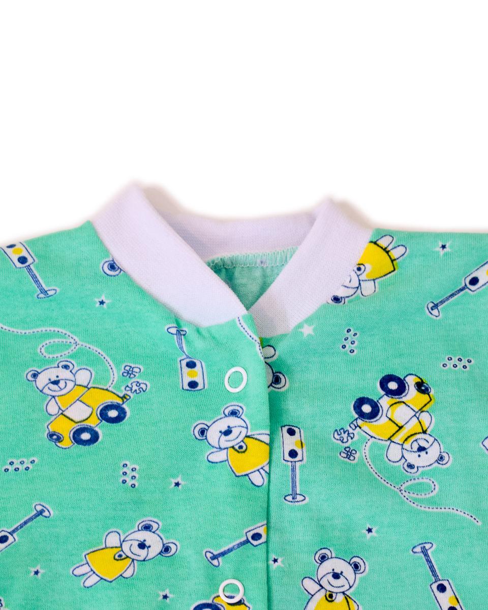 Боди детское Amoteks, кулирка, р.74, нежный хлопок для комфорта малыша, зеленый с милыми мишками