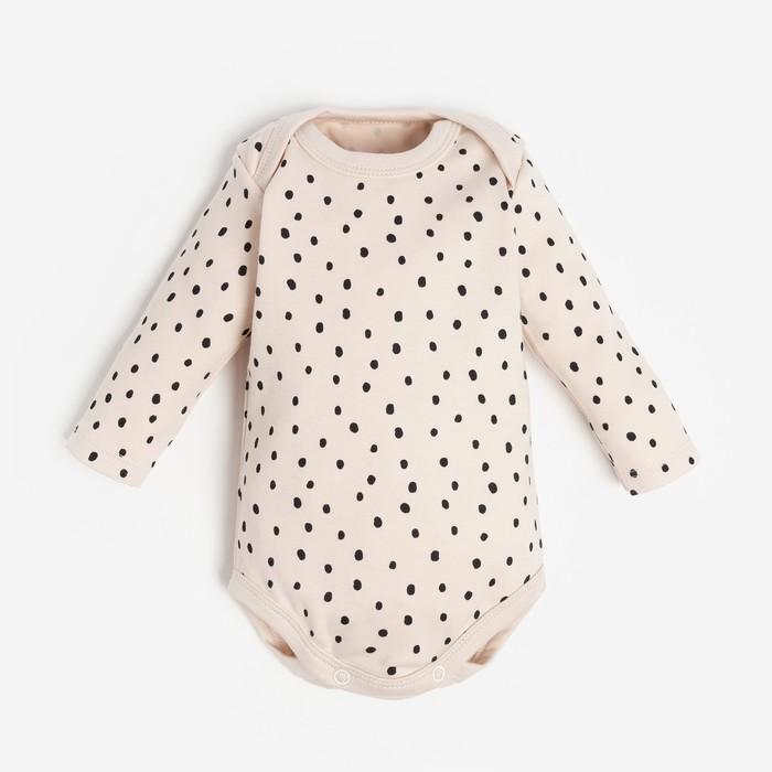 Боди детское с дл. рукавом "Киса", рост 62-68 см, бежевый, 100% хлопок