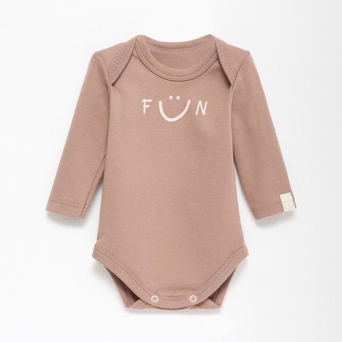 Боди детское 'Fun' с длинным рукавом, 100% хлопок, бежевый, размер 62-68 см