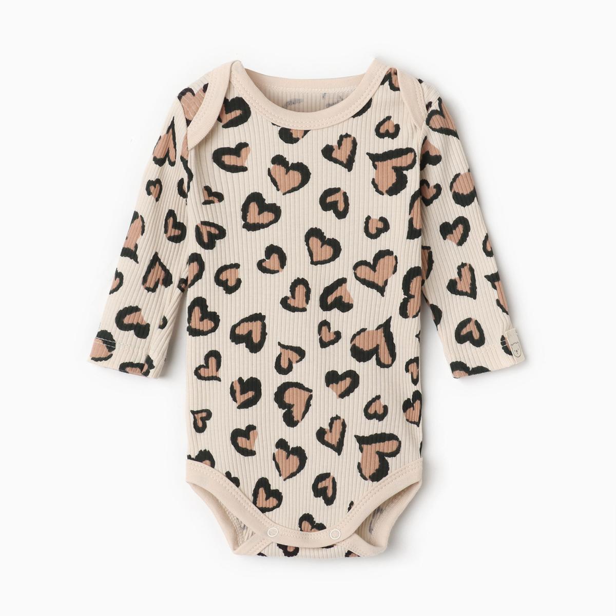 Боди для малыша "Leo love" Крошка Я, бежевый с сердечками, хлопок 100%, рост 80-86 см
