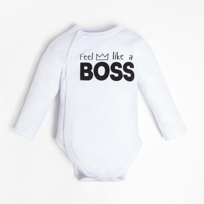 Боди детское "Little Boss" с длинным рукавом, 68-74 см, 100% хлопок, белое