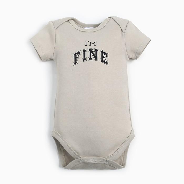 Подарите своему ребенку комфорт и свободу движений с этим очаровательным боди из 100% хлопка. Нежный бежевый цвет и стильная надпись "I'M FINE" создают модный образ для маленького непоседы. Идеально подходит для повседневной носки и активных игр.