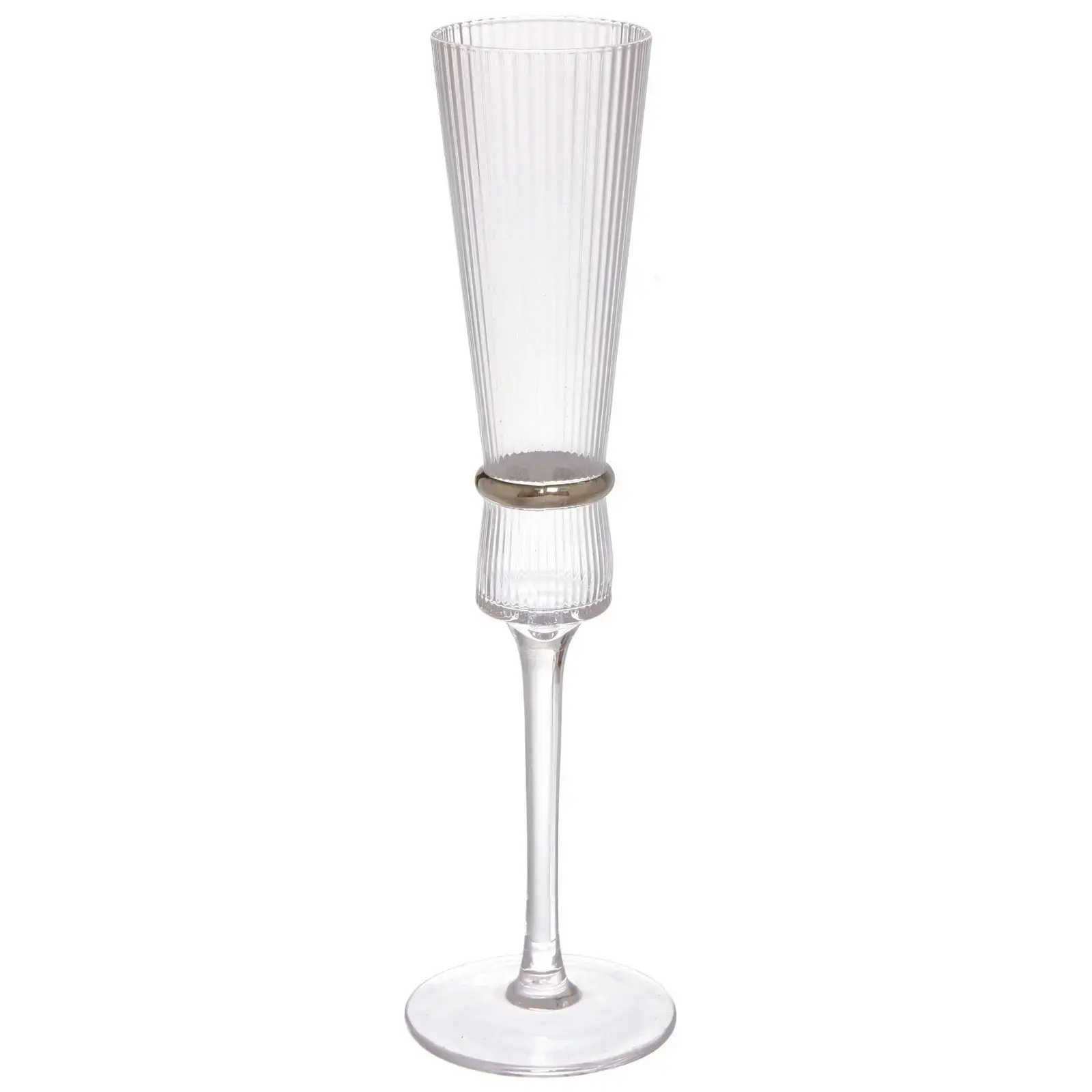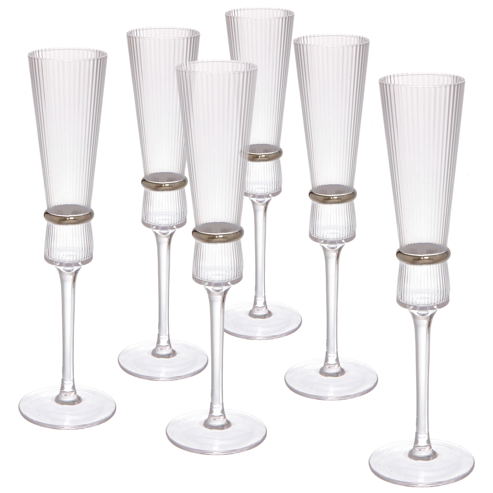 Набор бокалов для шампанского «VIVALDI», 6 шт, стекло, 180 мл, рифлёный дизайн с металлическими кольцами