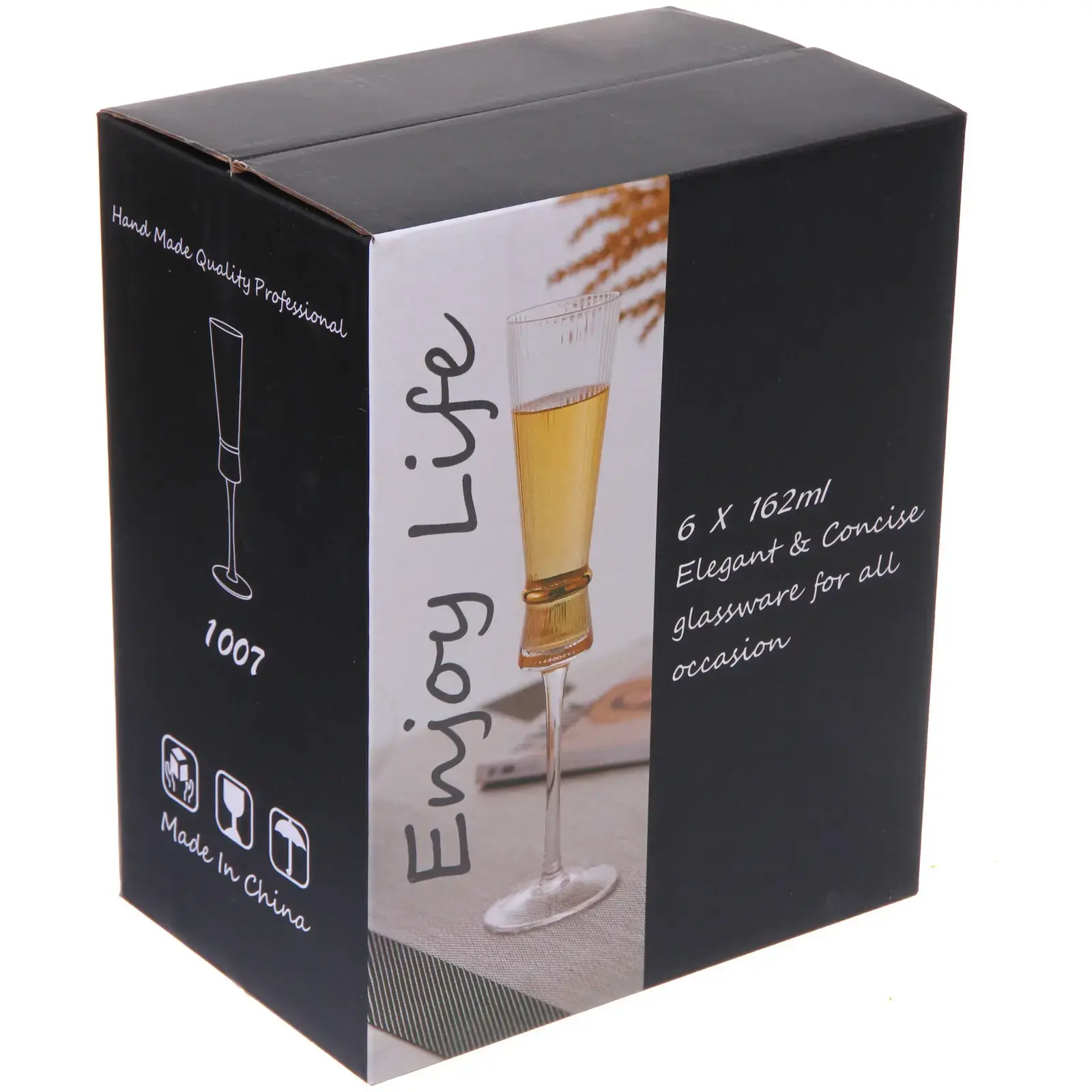 Набор из 6 стеклянных фужеров с рифлёным дизайном создан для ценителей изысканной сервировки. Устойчивые чаши с металлическими акцентами подчеркнут стиль вашего мероприятия и сохранят игристость шампанского.