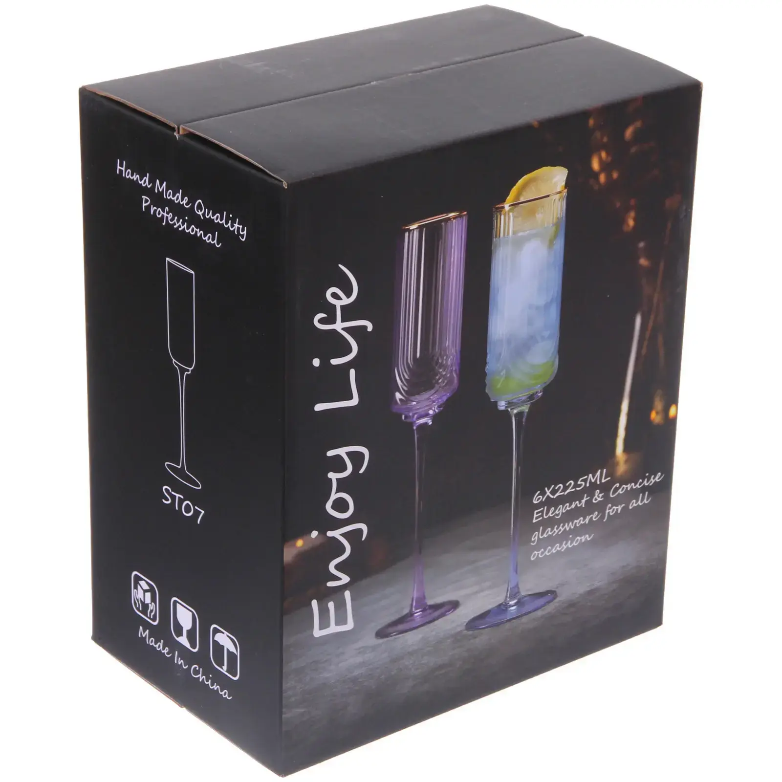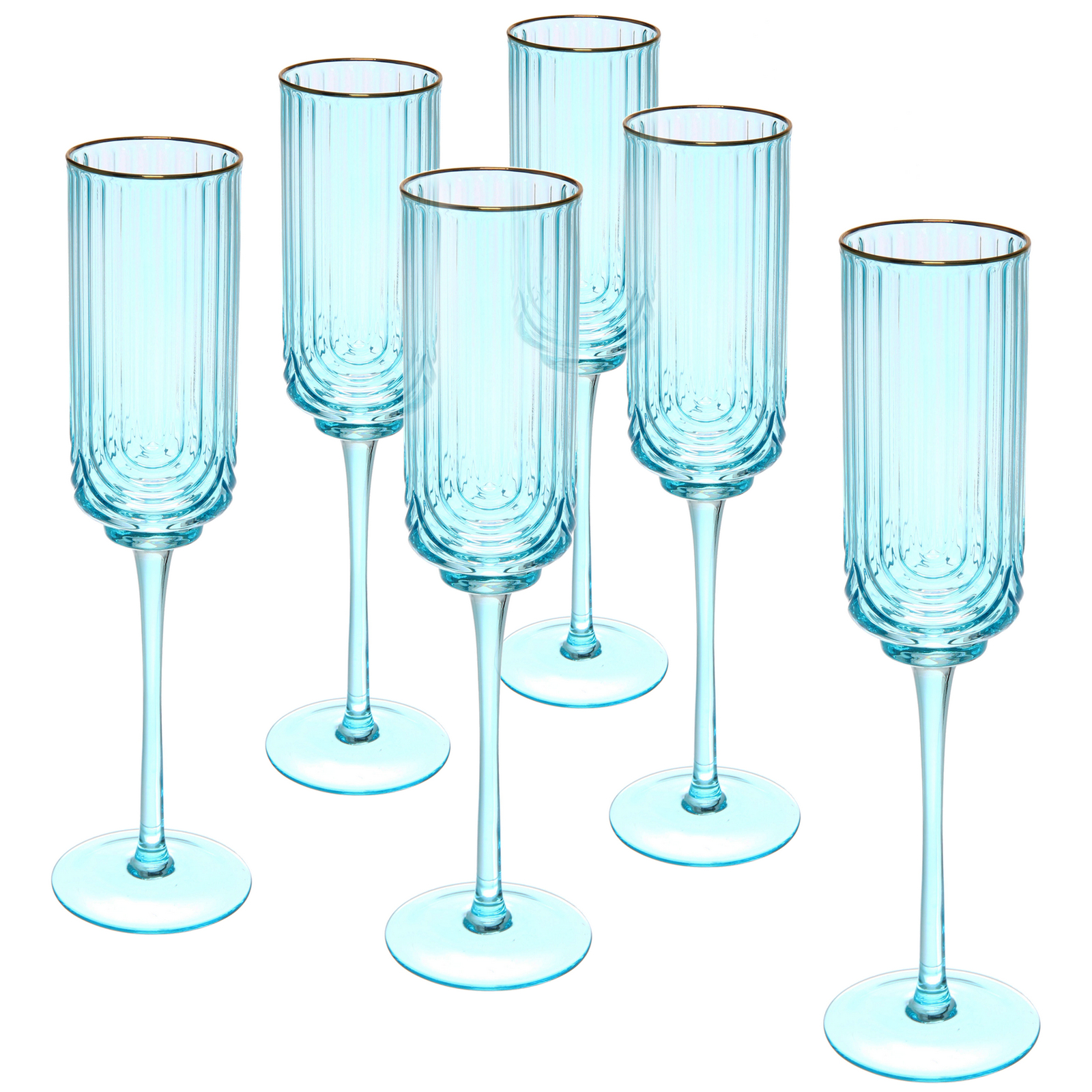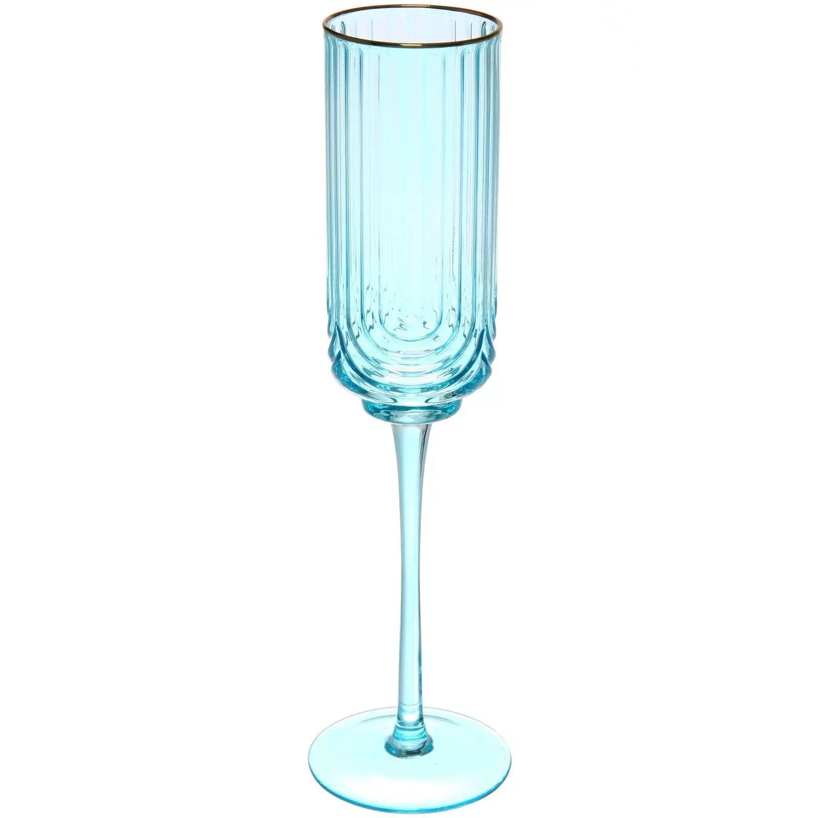 Набор бокалов «Enjoy Life» для шампанского, 6 шт, 210 мл, голубой с золотистой окантовкой, стекло