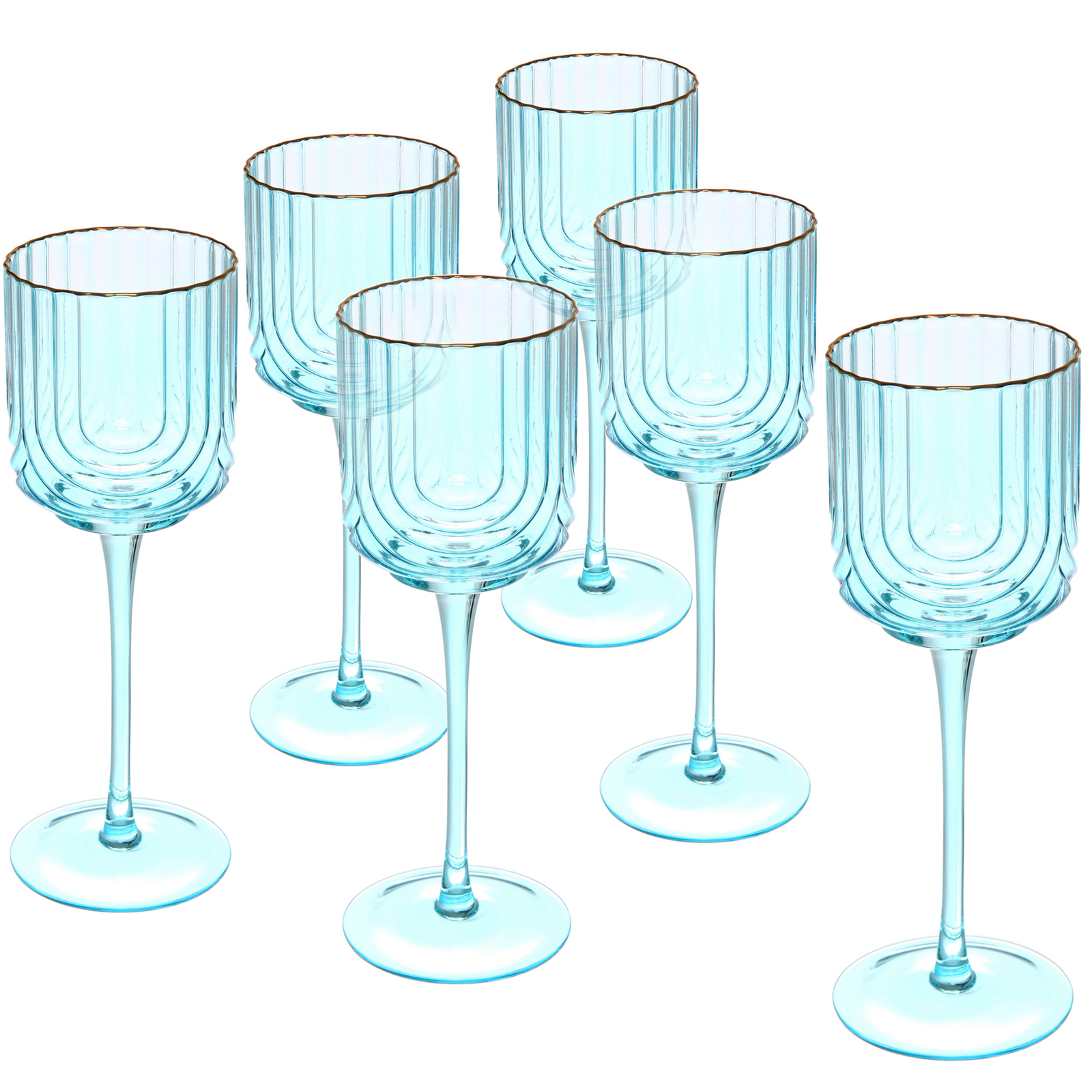 Набор бокалов для вина 6шт по 330мл, голубой с золотым ободком