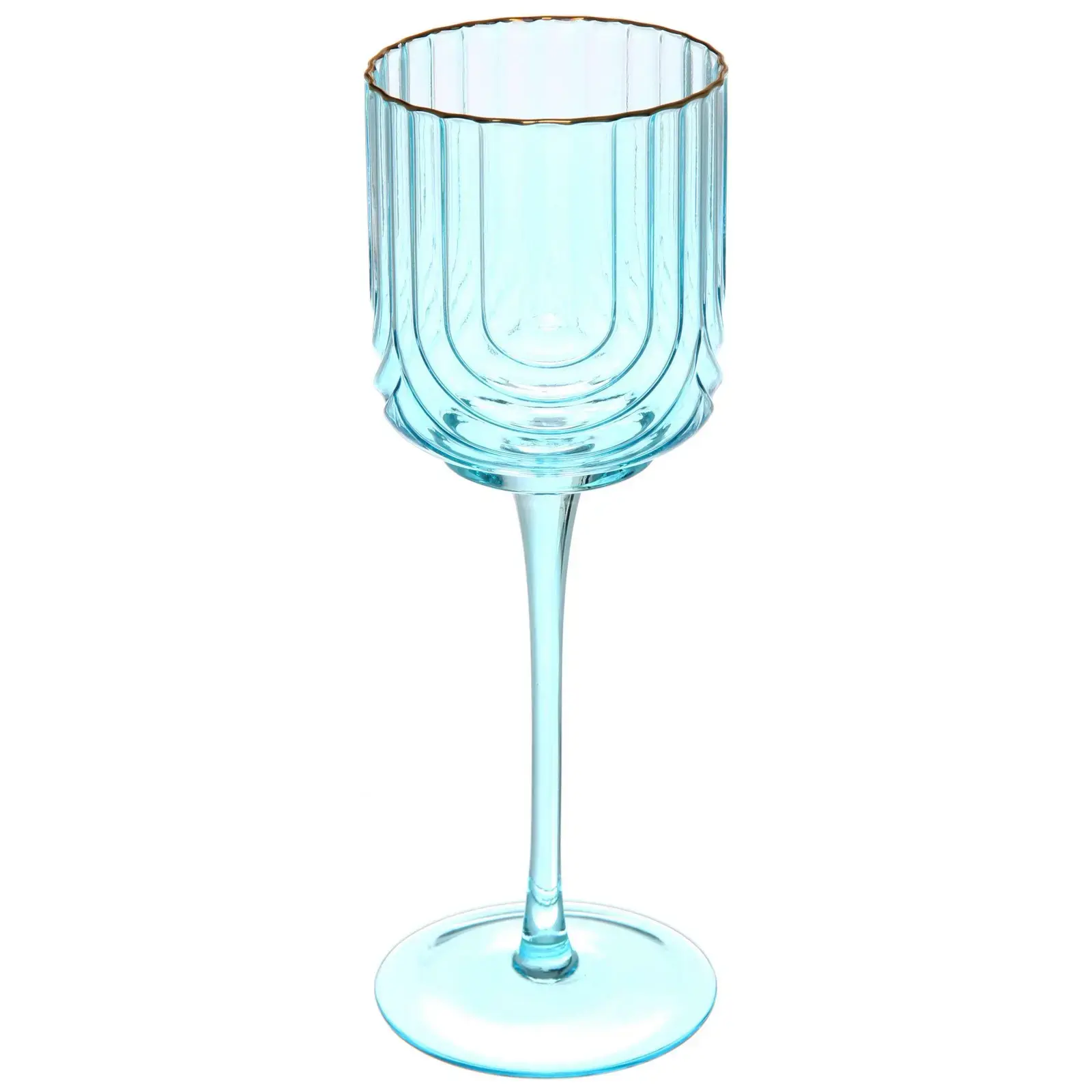 Размеры: высота стандартная для бокалов такого типа (точная высота не указана). Материал: стекло. Цвет: светло-голубой с золотым акцентом.