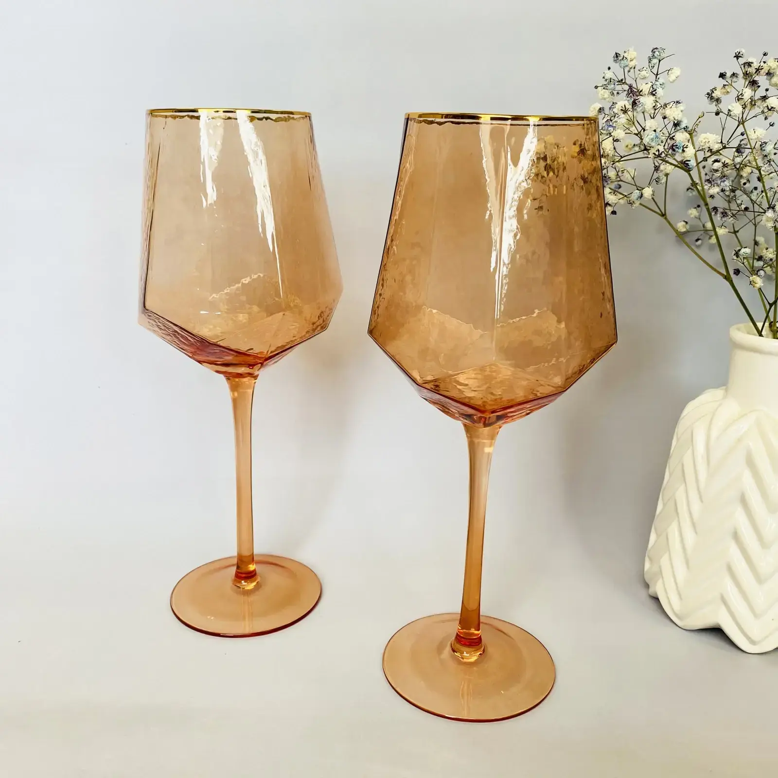 Представьте, как ваши гости будут восхищаться элегантными бокалами серии 'ICE CRYSTAL'. Их уникальная текстура и золотистая окантовка создают неповторимую атмосферу роскоши.