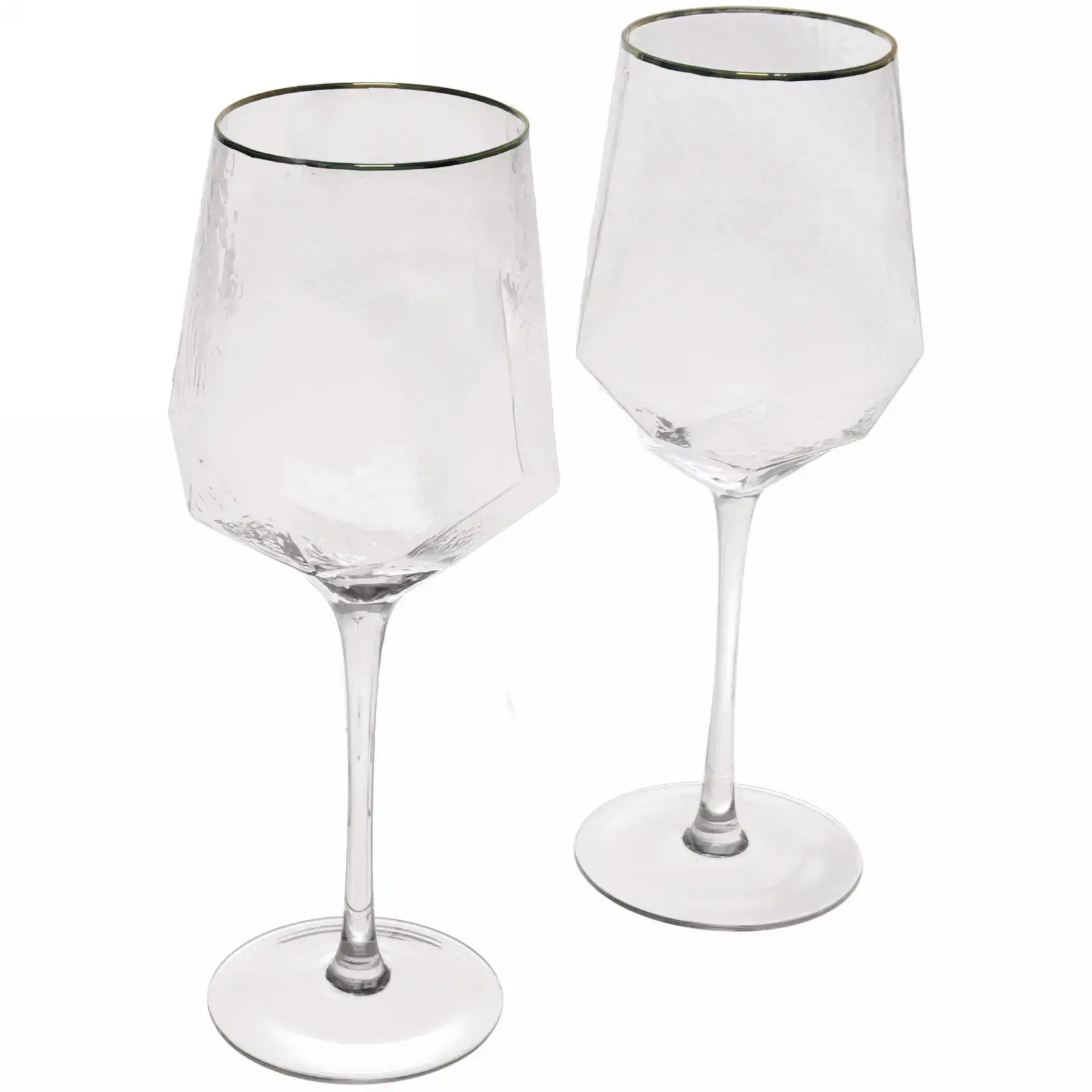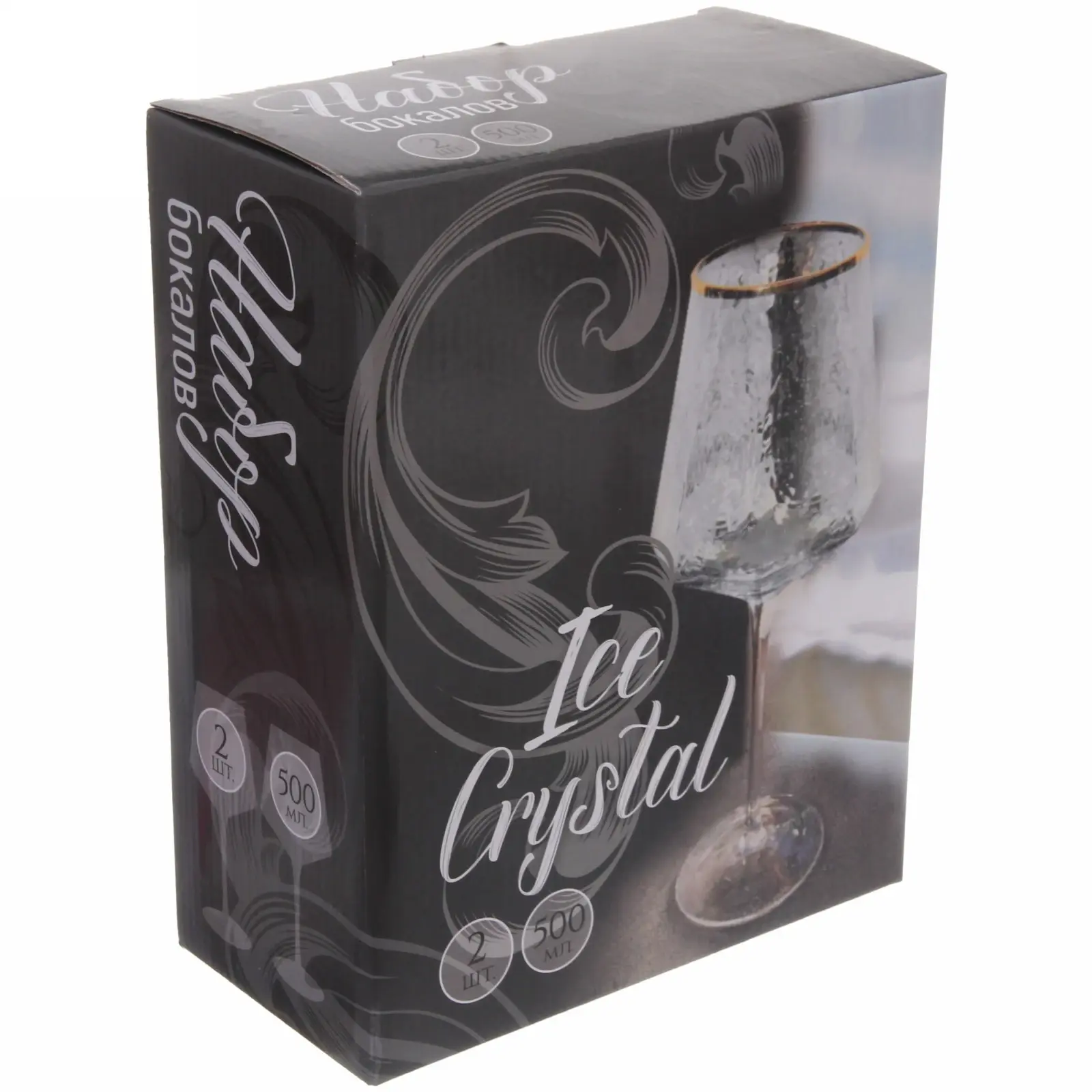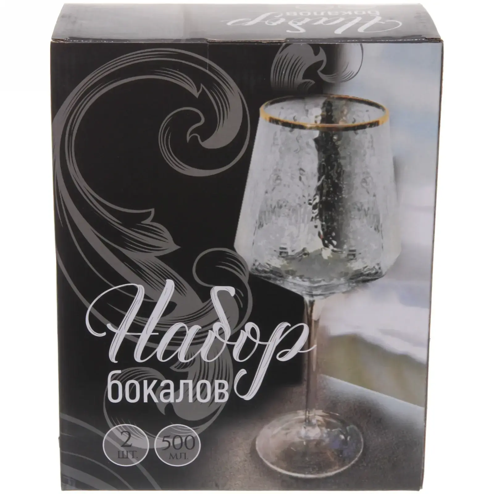 Набор бокалов для вина «ICE CRYSTAL», 2шт, 500мл, прозрачные, многогранная форма, золотистая окантовка