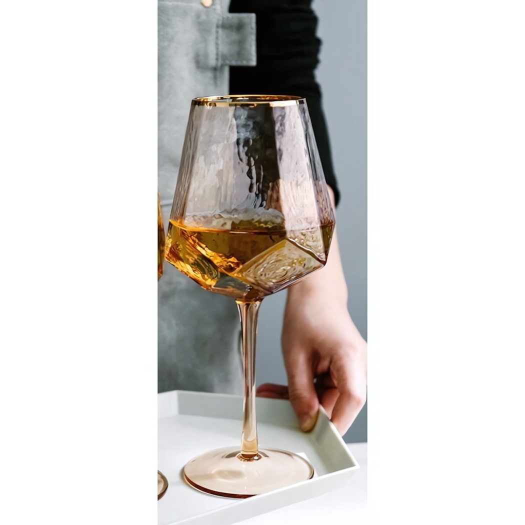 Ромбовидная огранка создаёт эффект кристалла, усиливая визуальную привлекательность напитков. Золотистый ободок на верхней кромке добавляет ноту роскоши, делая сервировку завершённой даже без дополнительного декора.