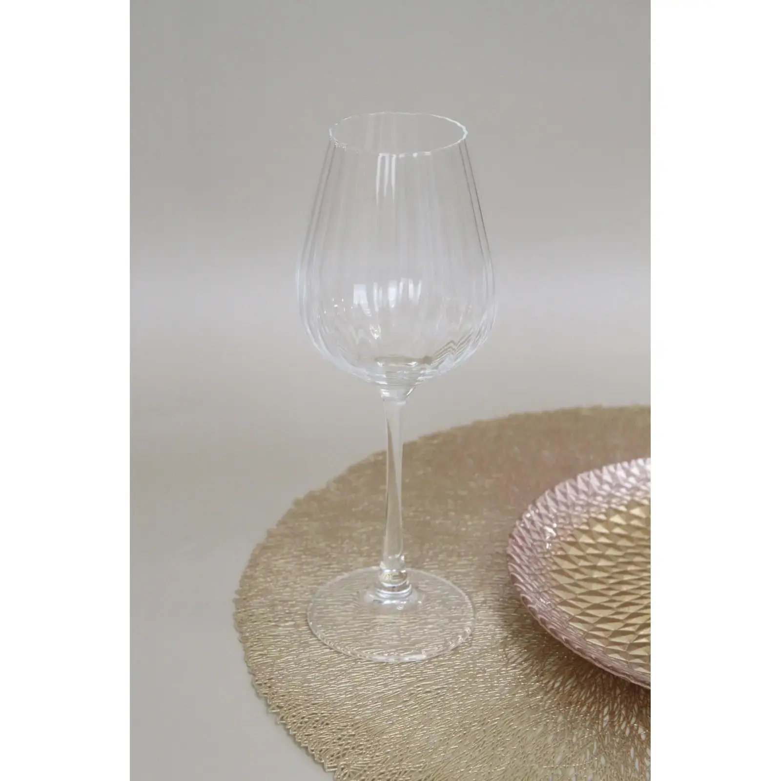 Объем бокала составляет 542 мл, что делает его идеальным для подачи вина. Рифлёная поверхность добавляет текстуру и визуальный интерес, а устойчивая подставка гарантирует, что бокал не опрокинется. Этот бокал станет отличным подарком для ценителей вина и стильных аксессуаров для дома.
