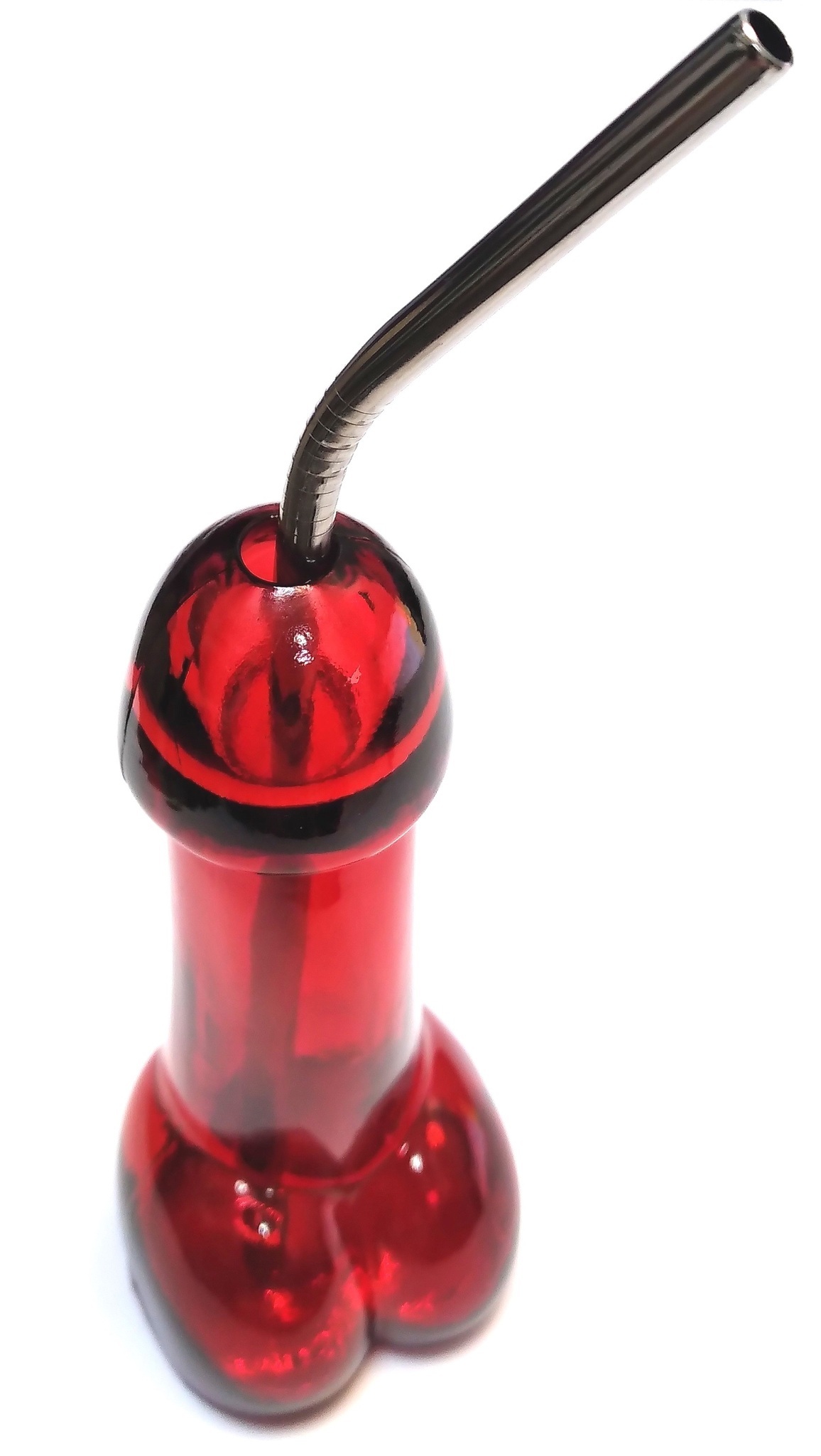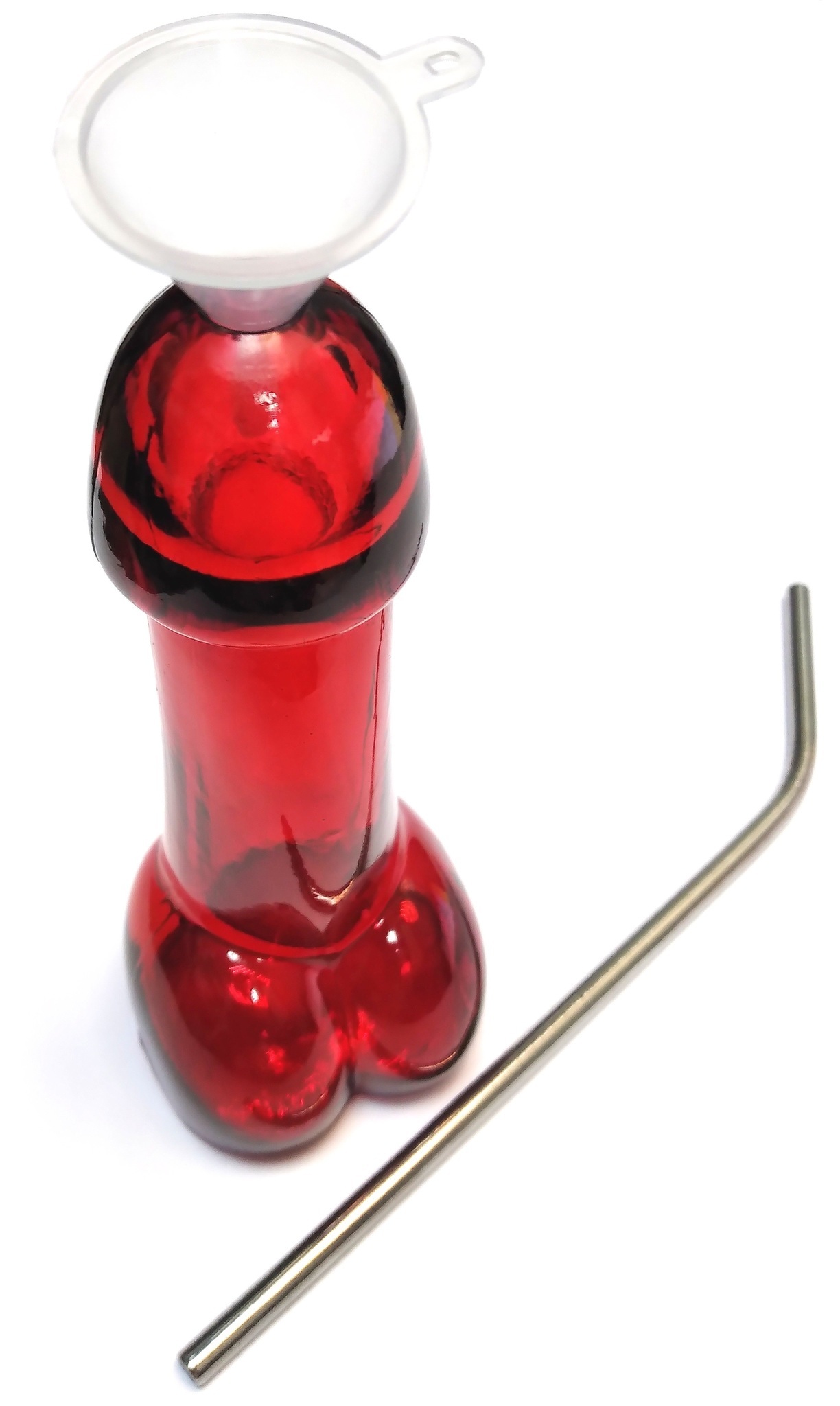 Бокал эротический в форме пениса, 150 мл, красный, с воронкой и трубочкой