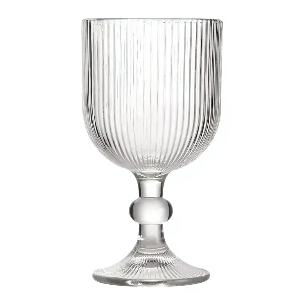 Бокал выполнен из бесцветного стекла с цилиндрической формой, расширяющейся кверху. Благодаря эргономичной ножке с утолщением в виде декоративного шара и устойчивому круговому основанию бокал удобно держать, а риск случайного опрокидывания снижен. Рифленая поверхность не только красиво смотрится, но и предотвращает скольжение.