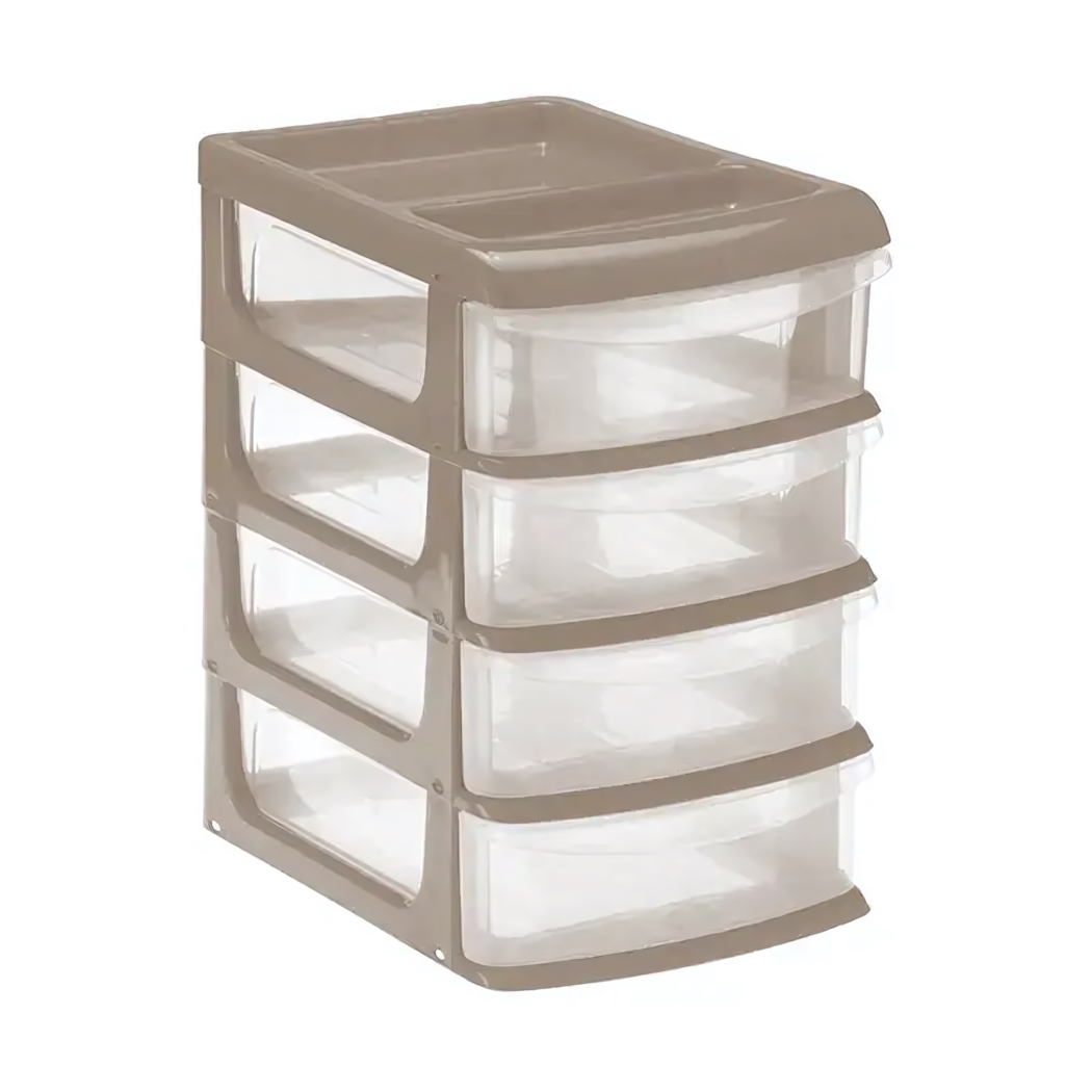 Органайзер пластиковый с 4 прозрачными ящиками, цвет капучино, для компактного хранения