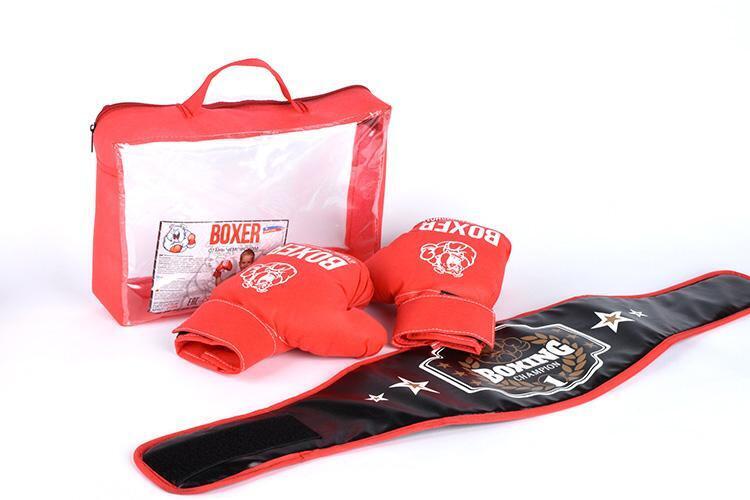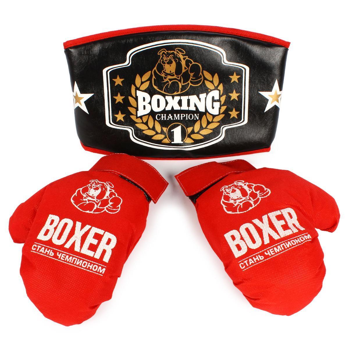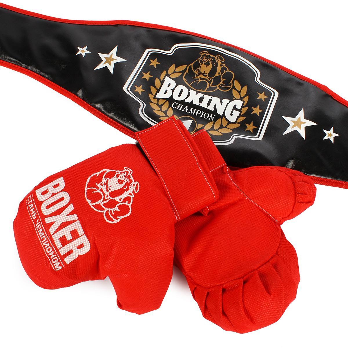 Боксерский набор 'BOXING CHAMPION', перчатки и пояс, красный/черный, Velcro