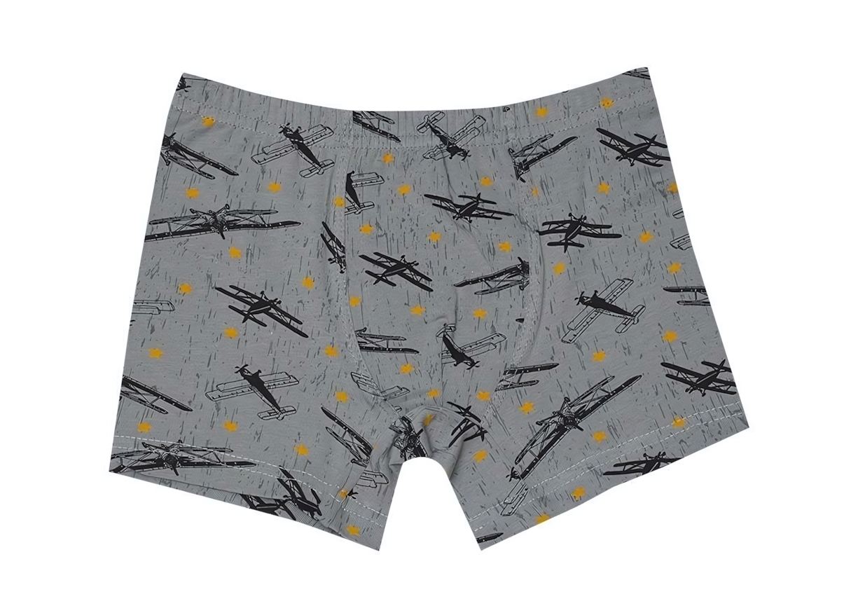 Боксеры для мальчика Donella, комфортный хлопок, принт самолеты, серый, размер 116 (6-7 лет)