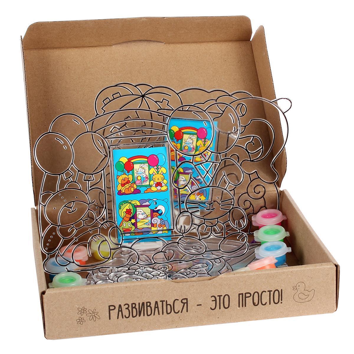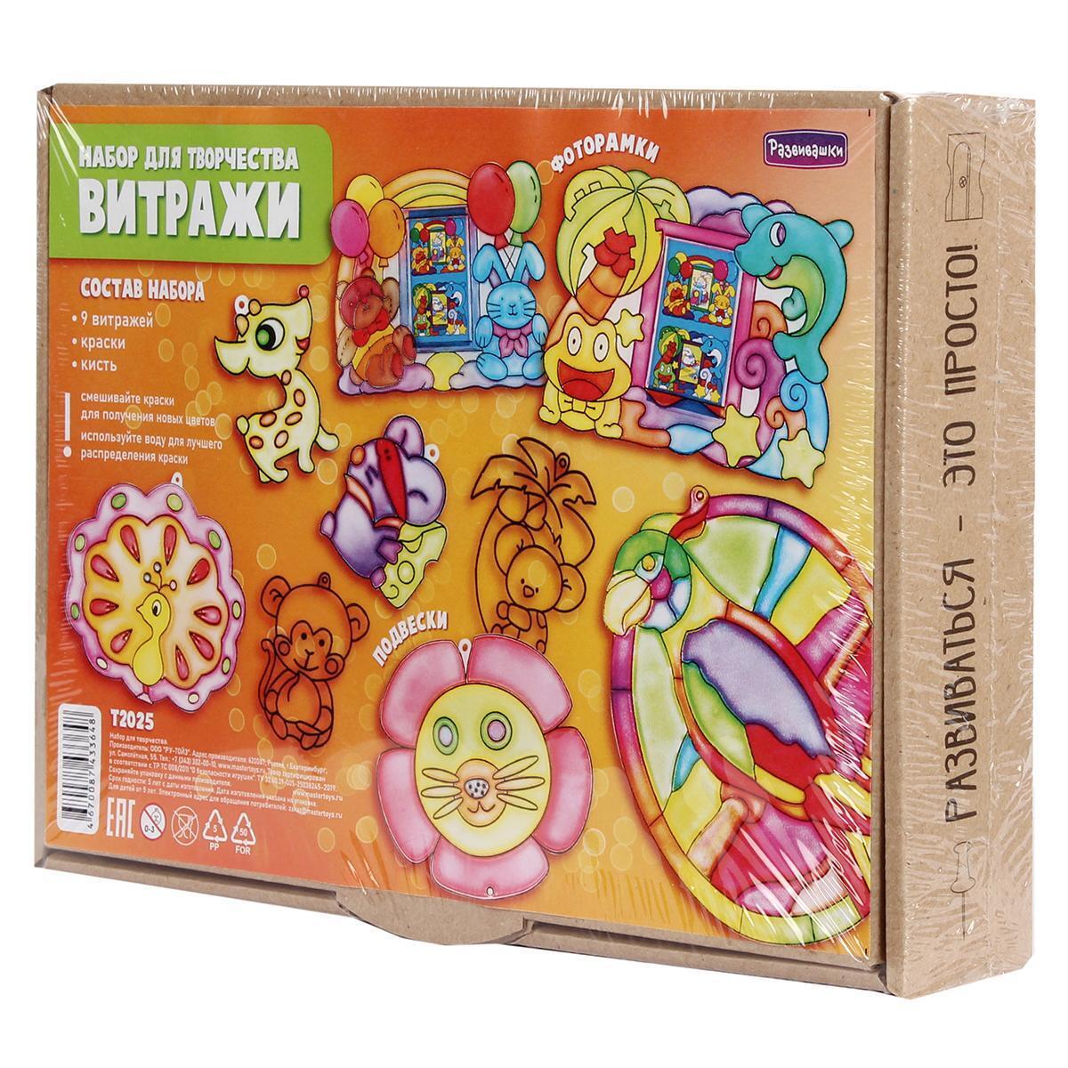 Набор для творчества 'Витражи', 9 штук, краски и кисть, животные и узоры
