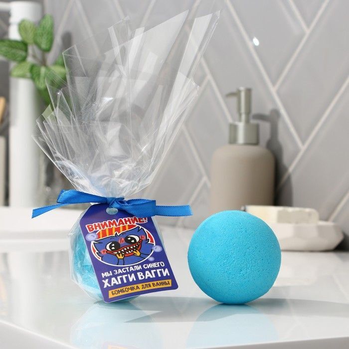 Бомбочка имеет округлую форму и мелкую текстуру, что делает её не только красивой, но и приятной на ощупь. Упаковка оформлена с использованием синей ленты и яркого ярлыка, что делает её отличным подарком для близких. Не упустите возможность порадовать себя и своих близких этой замечательной бомбочкой для ванны!