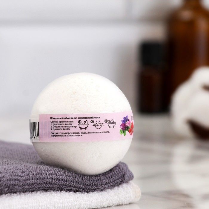 Объем бомбочки составляет 140 граммов, что достаточно для одной полноценной ванны. Она выполнена в форме шара и имеет белый цвет, что делает её не только полезной, но и эстетически привлекательной. Бомбочка произведена в России и подходит для личной гигиены.