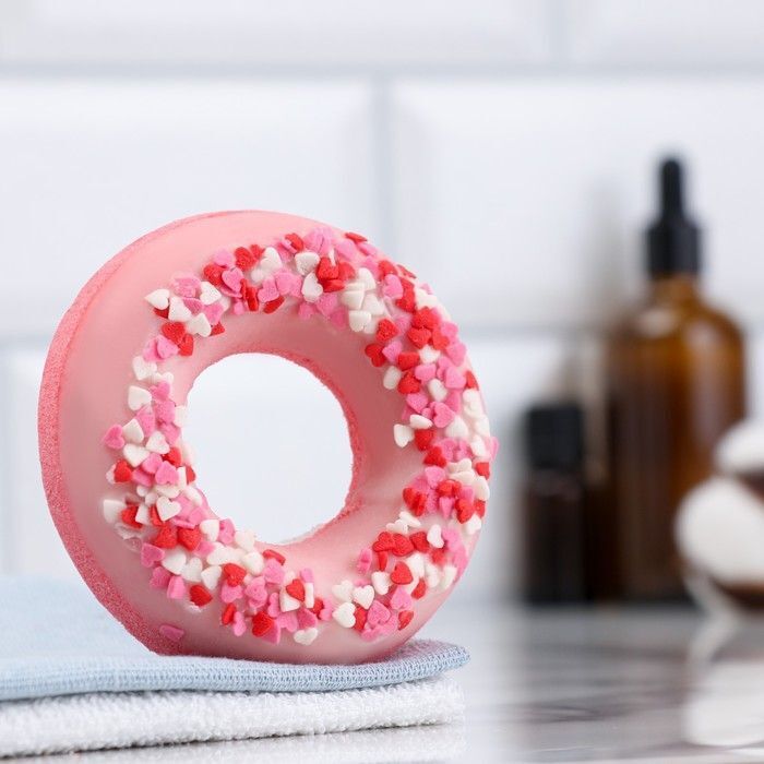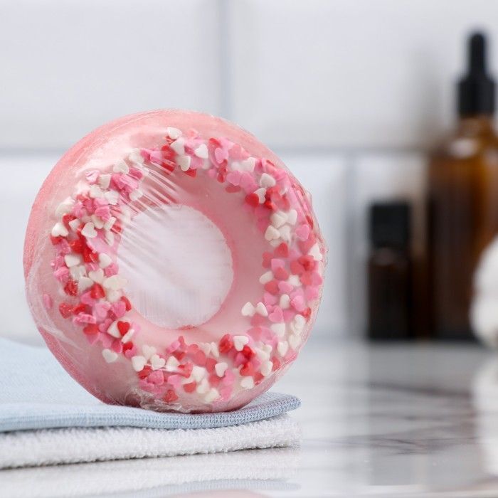 Подарите себе или своим близким моменты наслаждения и заботы о себе с бомбочкой для ванны 'Клубничный пончик'.