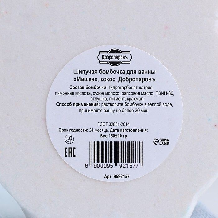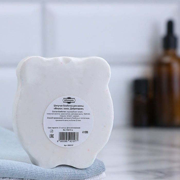 Бомбочка имеет вес 150 гр и выполнена в форме медвежонка, что делает её не только полезной, но и привлекательной. Состав включает натрий бикарбонат, лимонную кислоту и кокосовое масло, что обеспечивает её высокую эффективность. Не забывайте хранить бомбочку в сухом месте и при температуре не выше 25°C, чтобы сохранить все её полезные свойства.