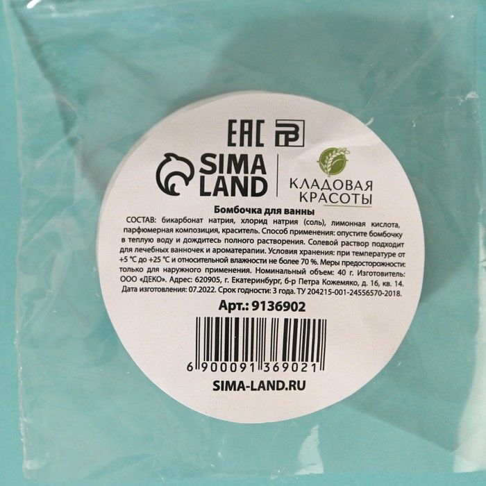 Объем бомбочки составляет 40 г, что делает ее идеальной для одной процедуры. Она имеет округлую форму и белый цвет с легким кремовым оттенком. Бомбочка изготовлена из порошкообразного материала с добавлением натуральных ингредиентов, что обеспечивает ее безопасность и эффективность. Не упустите возможность сделать вашу ванну особенной с этой ароматной бомбочкой!