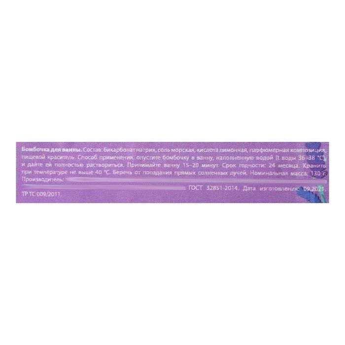 Эта бомбочка не только обладает расслабляющим эффектом, но и содержит натуральные лепестки лаванды, которые придают ей уникальный внешний вид и усиливают аромат. Она изготовлена из качественных ингредиентов, таких как бикарбонат натрия и морская соль, что делает её безопасной для кожи. Кроме того, бомбочка имеет срок годности 24 месяца, что позволяет вам наслаждаться ею долгое время.